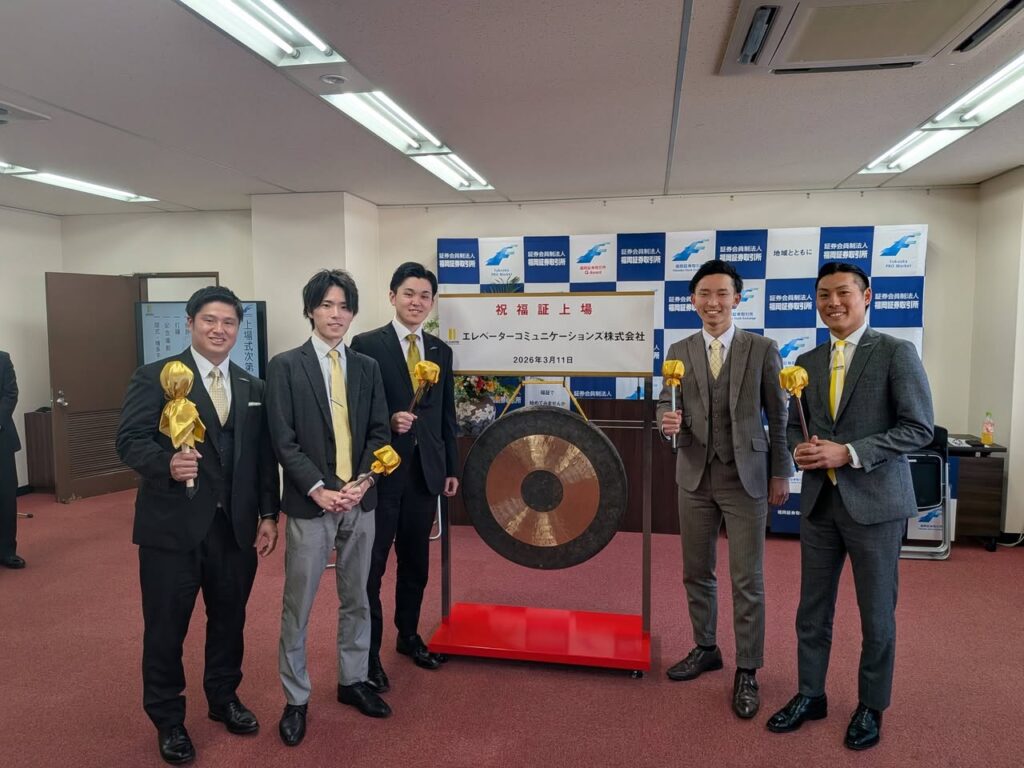 この度、当社Denraiグループが業務提携をさせていただいているエレベーターコミュニケーションズ株式会社様が、福岡証券取引所 本則市場へ上場されました。